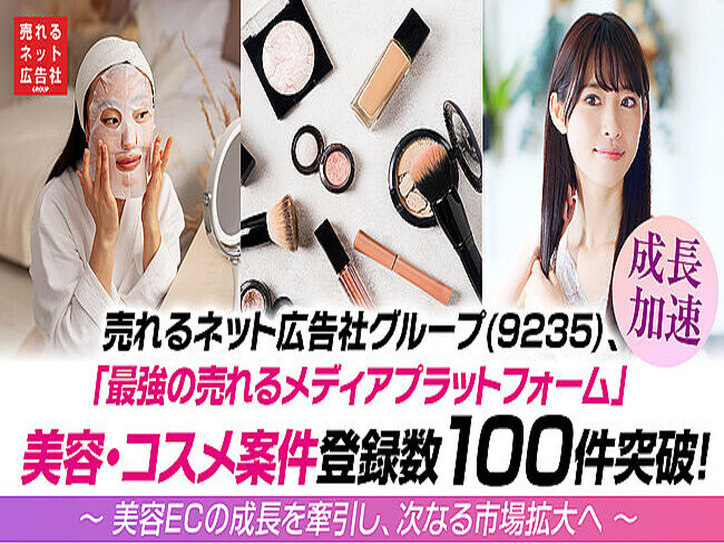 成長加速 売れるネット広告社グループ 9235 、「最強の売れるメディアプラットフォーム」美容・コスメ案件登録数100件突破!~美容ECの成長を牽引し、次なる市場拡大へ ~2025年9月24日掲載- ライブドアニュース。
