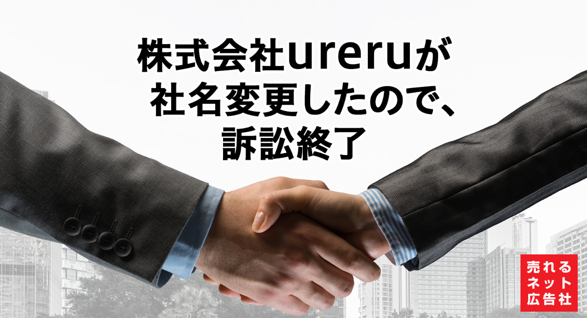売れるネット広告社』の訴えにより、「株式会社ureru」が『社名』を変更 「株式会社ureru」に対する訴訟は解決へ! - 株式会社売れるネット広告社 のプレスリリース。
