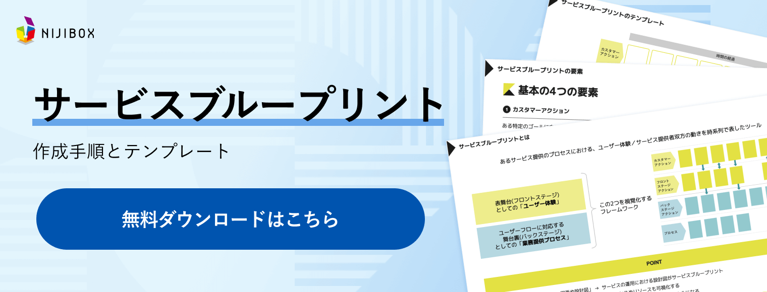 サービスブループリントとは?使うメリットと作り方、カスタマージャーニーマップとの違いをやさしく解説株式会社ニジボックス。