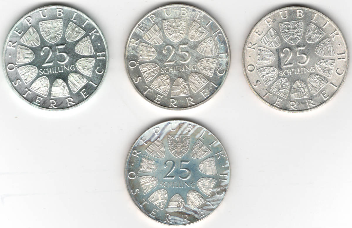 オーストリア 25シリング銀貨 1964年~1973年 10種揃い。