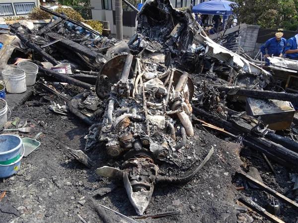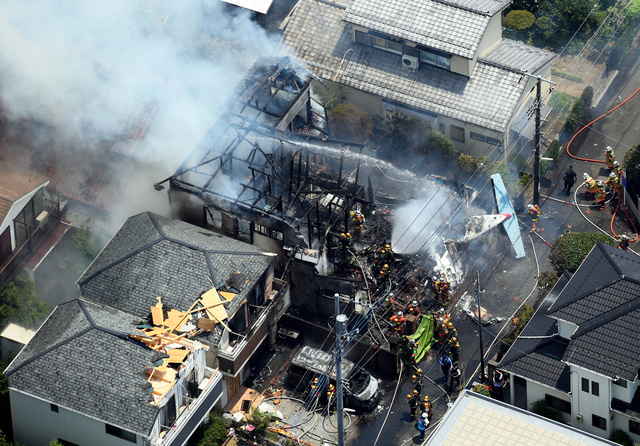 東京・調布、軽飛行機墜落=住宅街、民家炎上。