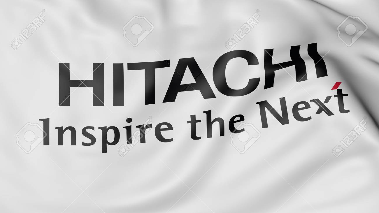 空と雲に対して日立ロゴと旗を振っています。編集 3 D レンダリングの写真素材・画像素材 Image 80800255。
