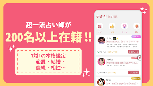占いアプリ「ナミヤ店」様にて、タロット占い師として活動させていただいております。 ナミヤ店様のアプリは、Apple Store、Googleplayストアでインストールできます☺️☺️ 恋愛全般 復縁、不倫、片思い 、お仕事、適職、他人間関係についてご相談いただいております。