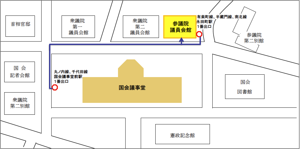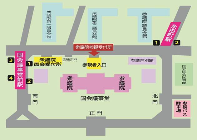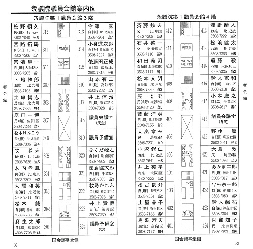 衆・参議院本館、議員会館地下案内図国会議員情報の国政情報センタ。