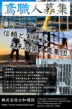 埼玉県の鳶職求人募集中<ホームページ公開しました>埼玉エリアを中心に鳶職人を積極的に求人する足場会社のブログページ。