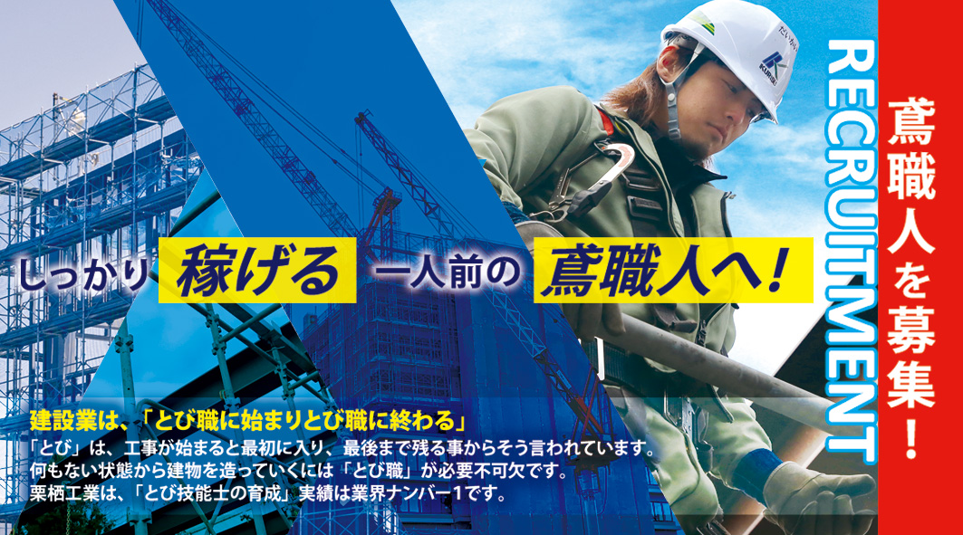 有限会社 栗栖工業 とび技能士を育てる企業。正社員・アルバイト・パート求人情報はマイカラ。