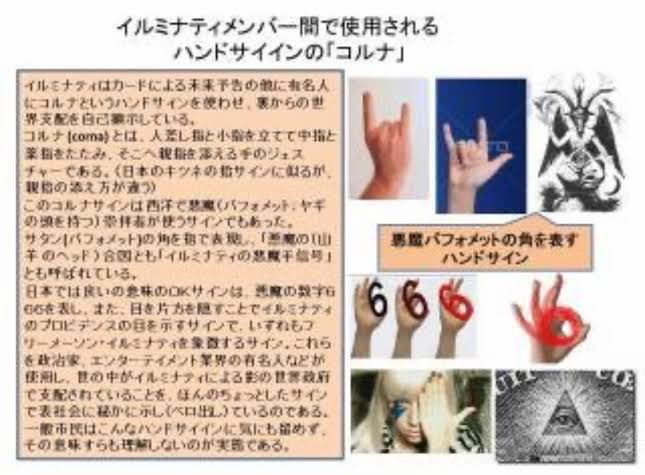 にくきゅうまま on X: "@pp2019XYZ @iiyamadatomomi 山本太郎さんのコルナサイン666 悪魔崇拝のサイン 良く見ますので日本を任せることは出来ません! ちなみにXJAPANのYOSHIKIも同じです。右目を隠すサインはペドフィリアのサインです。https:t.co K7mU5C63UW"X。