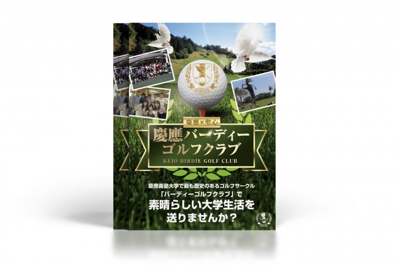 チラシ制作事例 – 大学ゴルフサークルのグリーン輝く新歓チラシデザインASOBOAD。