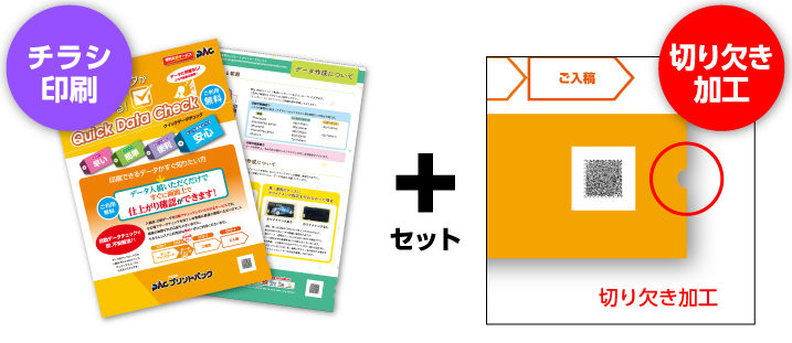 切り欠きフライヤー 音声コード用 印刷通販プリントパック。