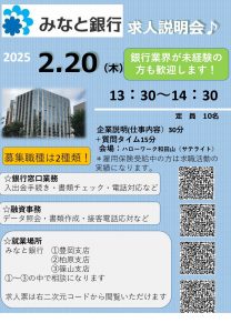 ハローワーク みなと銀行 求人説明会のお知らせあさご元気産業創生センタ。