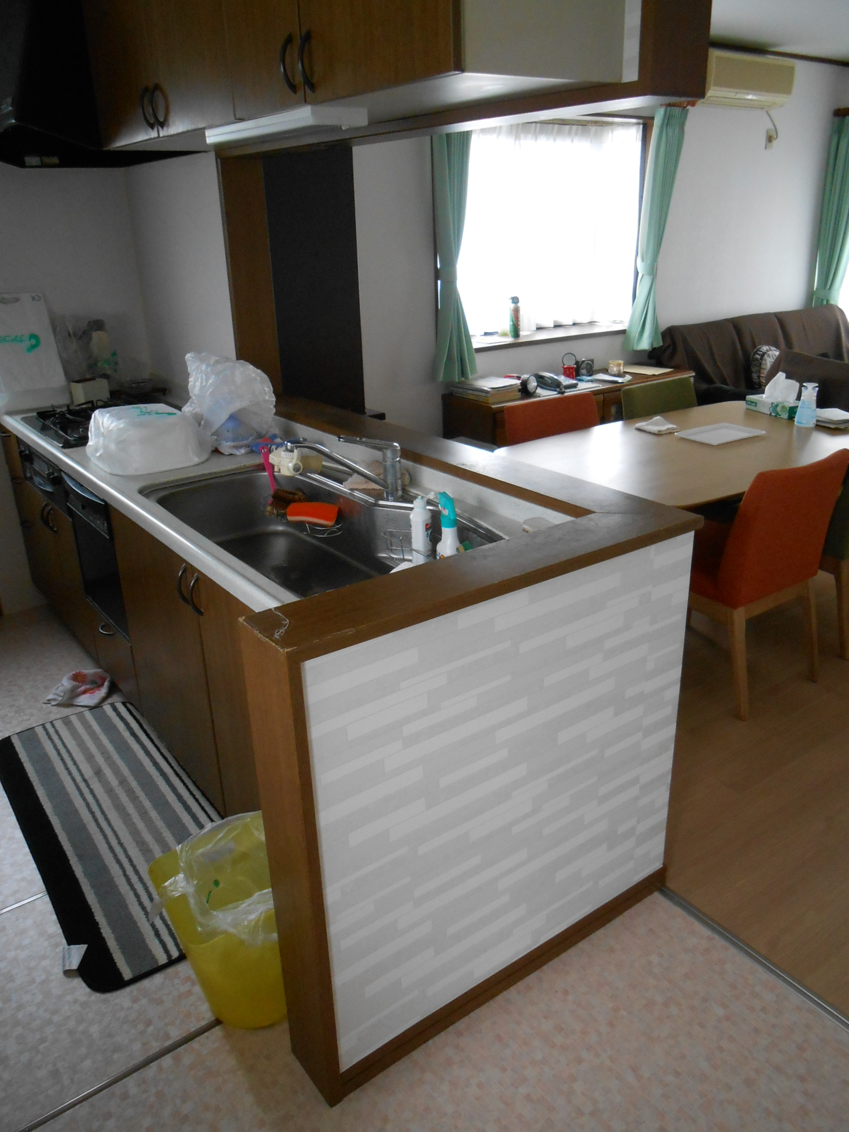 対面キッチン前の幅狭の笠木を幅広のカウンターに交換 リフォームで笑顔! 株 住まいるパートナ。