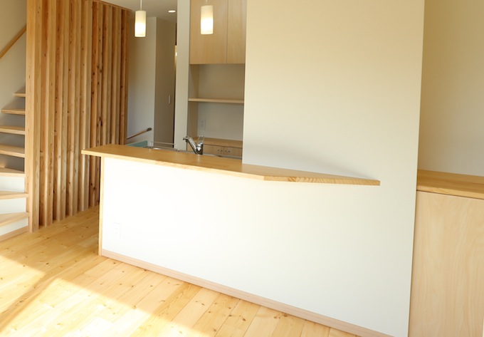 対面キッチンは笠木の延長 幅広 がオススメ!カウンターが勉強机や作業用にぴったり。あるたーく。