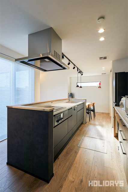 キッチン笠木のアカシア集成材は空間のアクセントに - キッチン - 他の地域 - HOLIDAYS ArchitectHouzzハウズ。