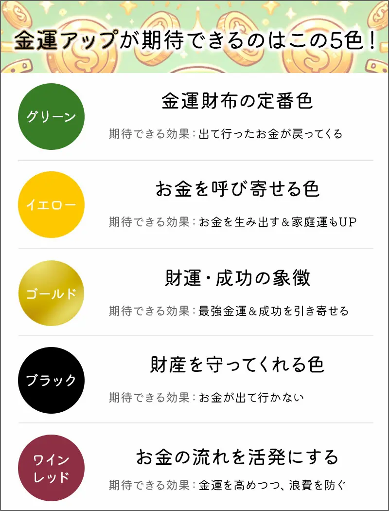 財布はこの色を買うべし!金運カラー特集 - SANKYO BLOG。