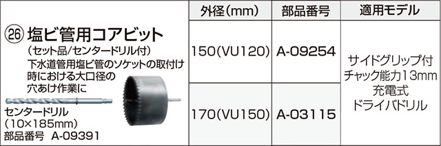 マキタ A-09391 塩ビ管用コアビット セット品 センタードリル付。