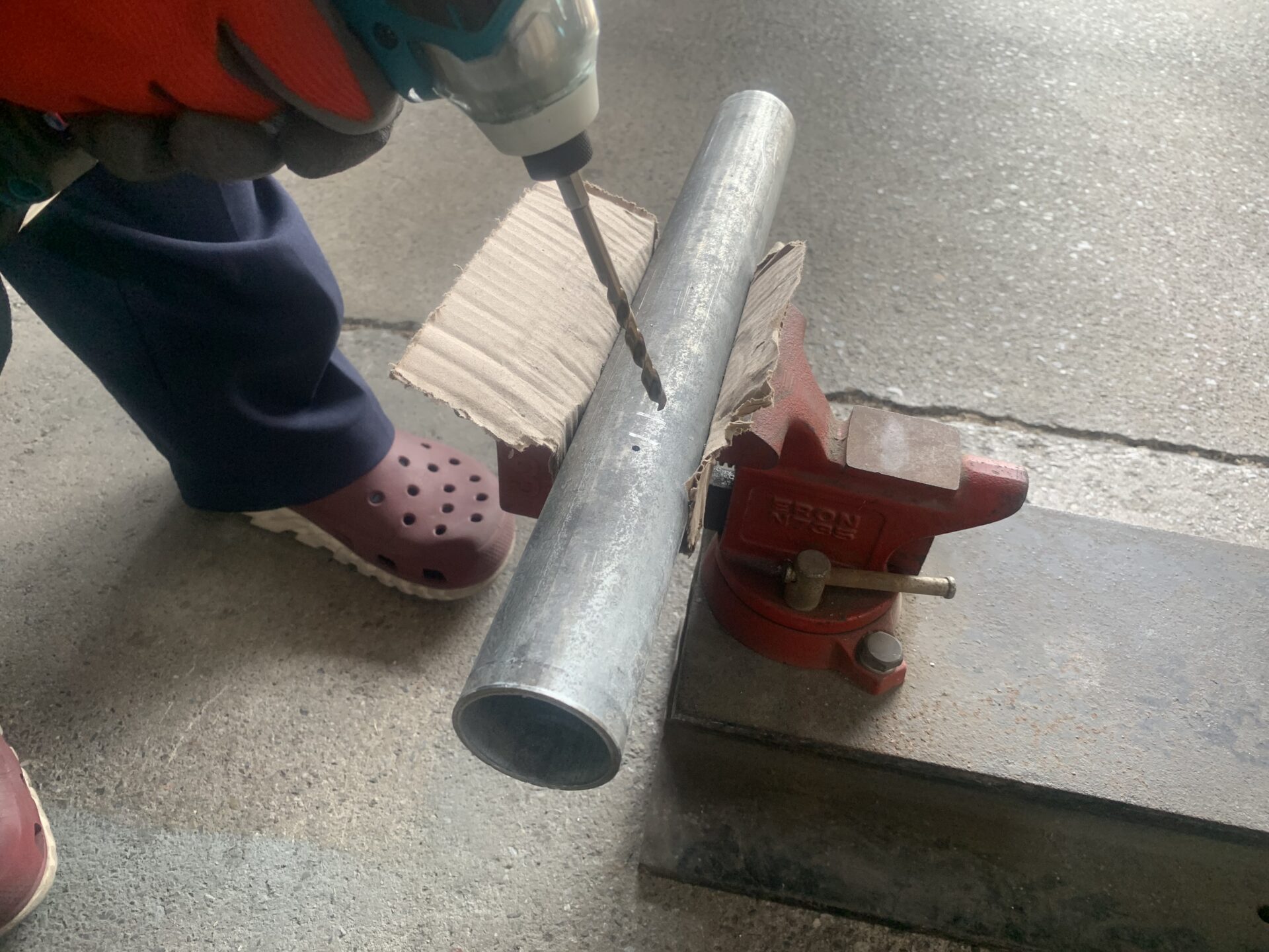 1.単管パイプ塗装専用台#2 パイプの穴あけ加工のやり方・単管ビス止めジョイントかん太オンラインショップ。