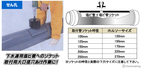 塩ビ 下水道 排水マス用バイメタルホルソ。