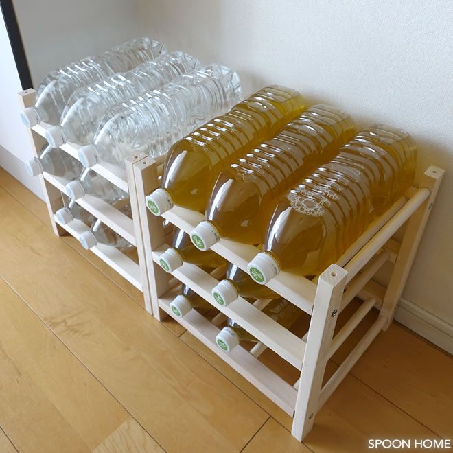 maki.t on Instagram: “ ペットボトル収納ラックdiy 𓅭2リットルペットボトル18本収納 できる 収納ラックを 手作りコンパクト収納ペットボトル収納取りやすく斜めに1収納 ペットボトル, 収納 アイデア 100均, 100均インテリア ダイソ。
