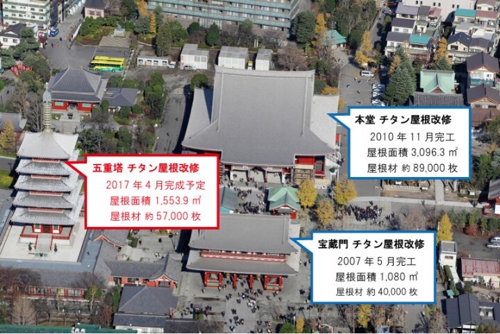 浅草寺『五重塔』がチタン屋根に! - 株式会社カナメのプレスリリース。