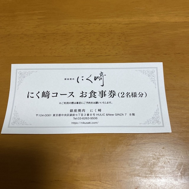 銀座焼肉 にく崎コース お食事券 2名様分 5 30まで。