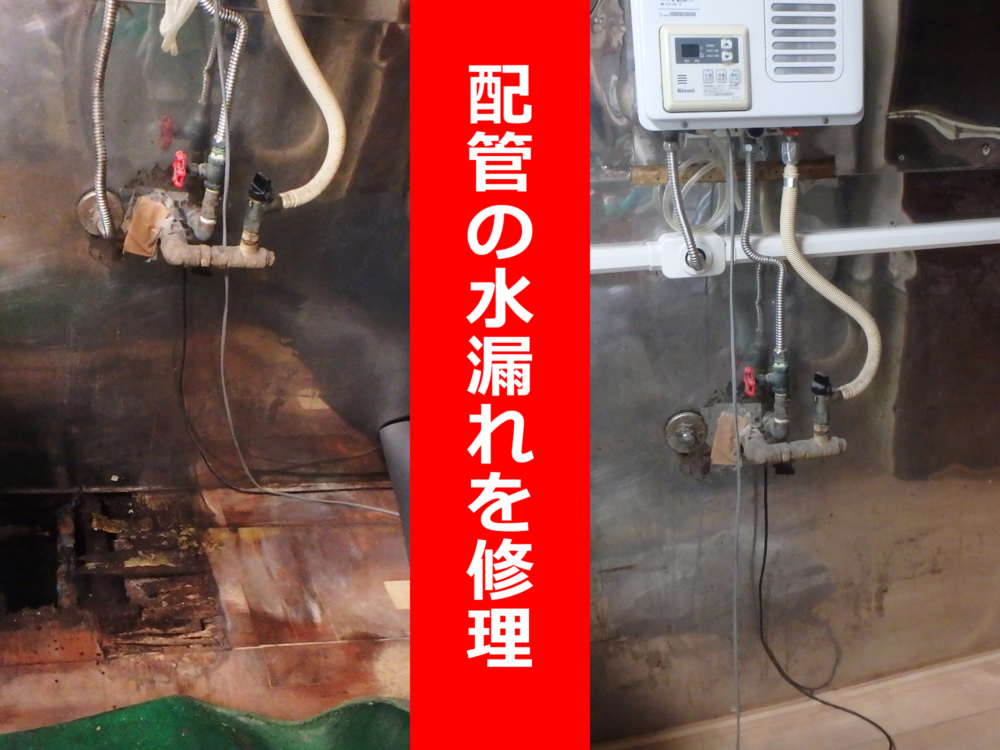 給湯器配管の漏水修理オシカモ住設ホームページ。