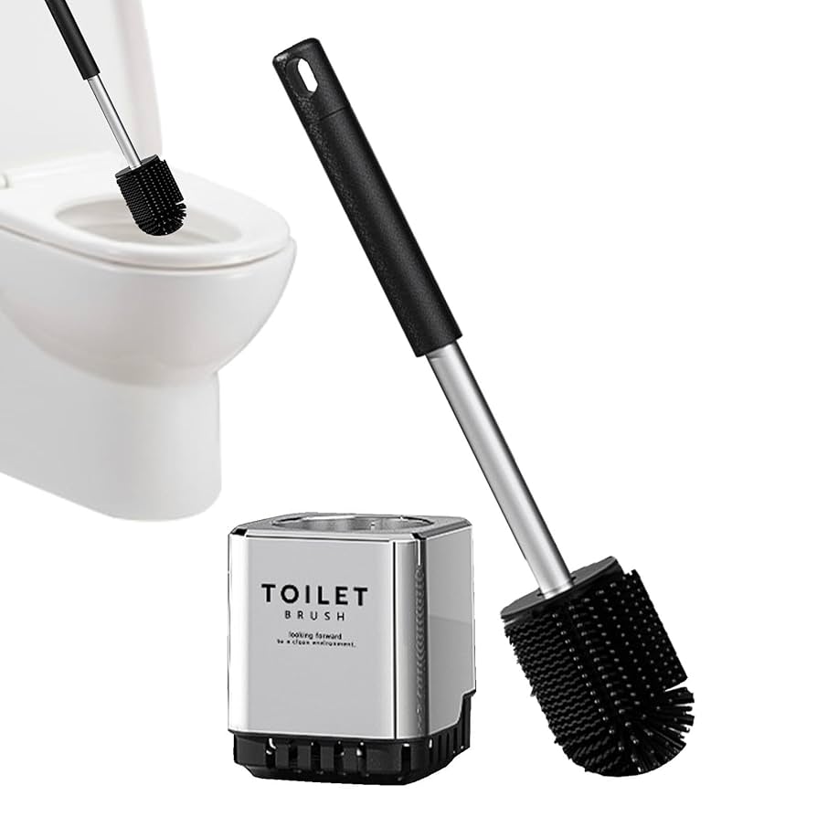 ステンレススチールハンドル付きディープクリーントイレブラシ - ホテルトイレブラシカバーボックス トイレ掃除ブラシ。