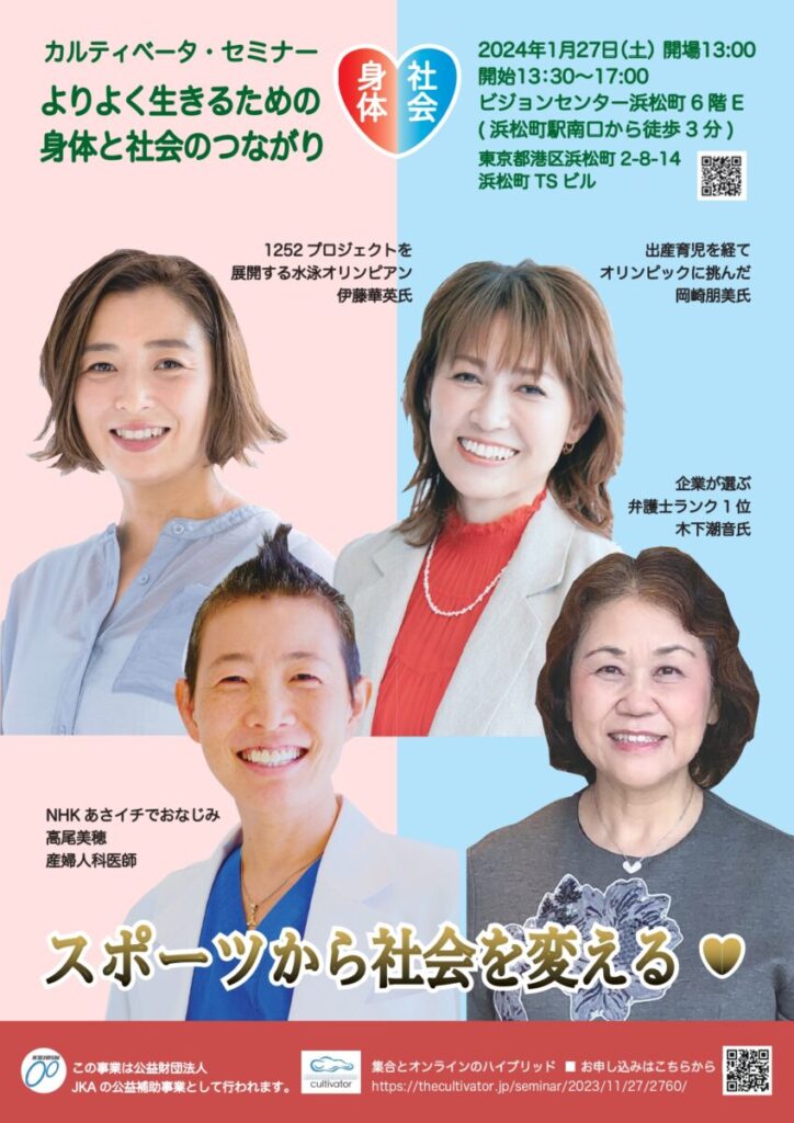 カルティベータ セミナー 2024年1月27日 土 スポーツも社会を変える力を持っている!「よりよく生きるための身体と社会のつながり」カルティベータスポーツ・芸術・文化を発信するオウンドメディア 一社 カルティベータ。