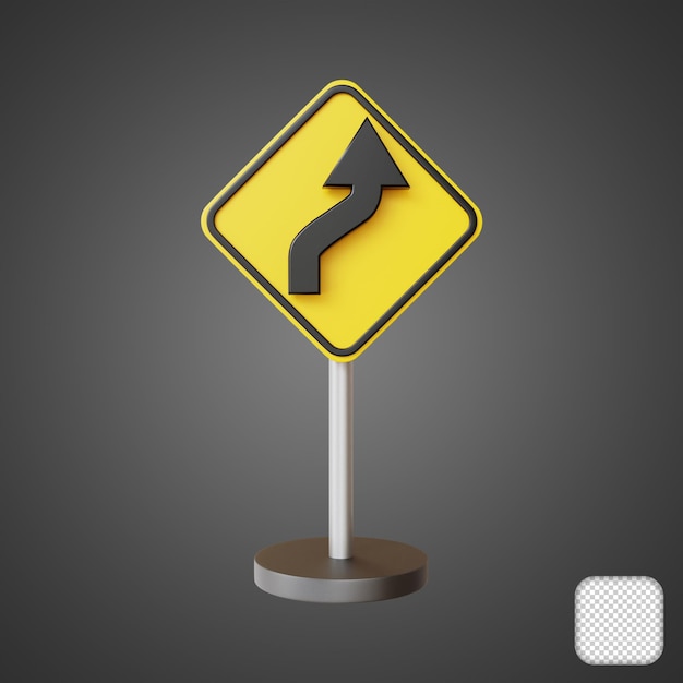 急な右カーブの道路標識交通 3 d イラストPremium PSD。
