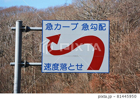 道路標識「急カーブ・急勾配・速度落とせ」の写真素材81445950- PIXTA。