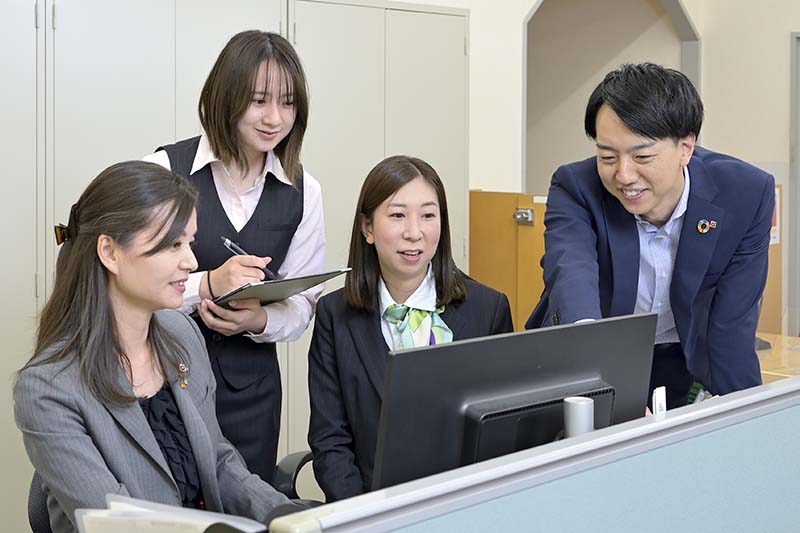 銀行員女性必見!オフィスカジュアル コーディネートガイド│銀行 オフィスの風景。