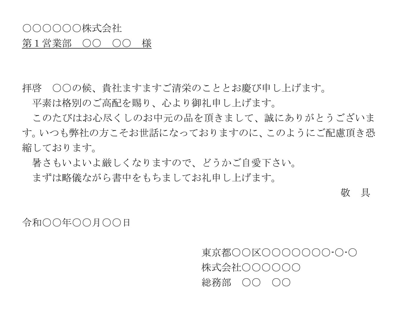 文例 例文お中元をいただいたお礼 取引先へ手紙の書き方。