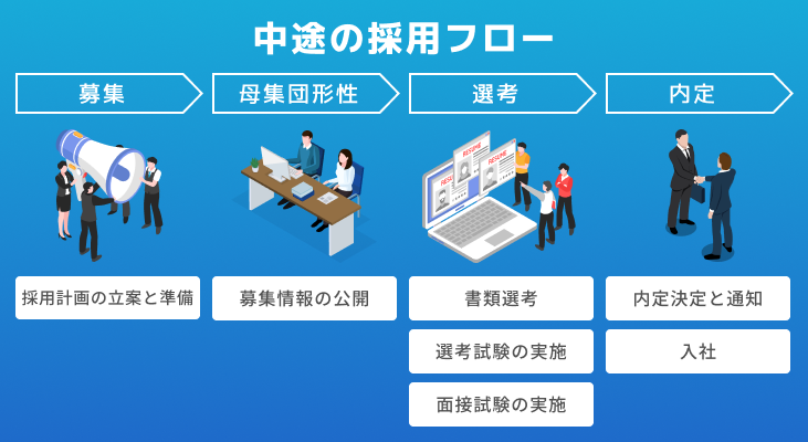 採用フローとは? 新卒・中途 基本パターン、採用活動の課題を改善する方法 -中途採用ノウハウリクルートエージェント。