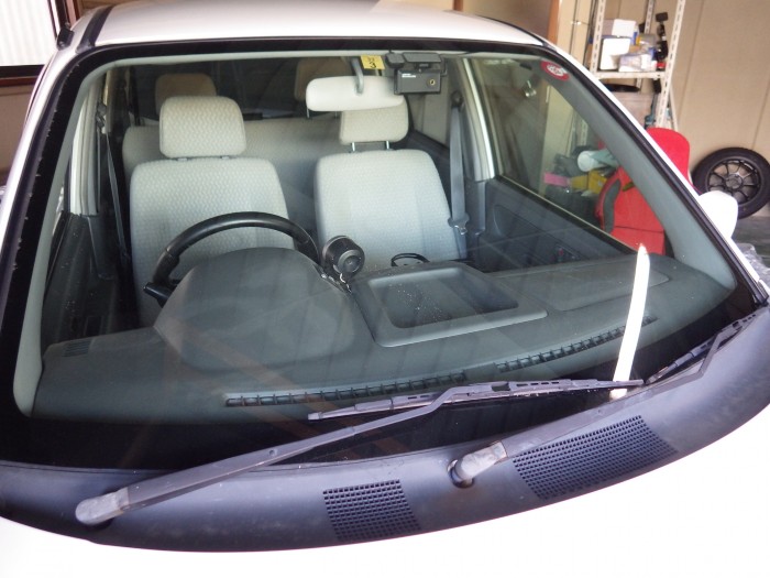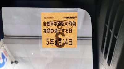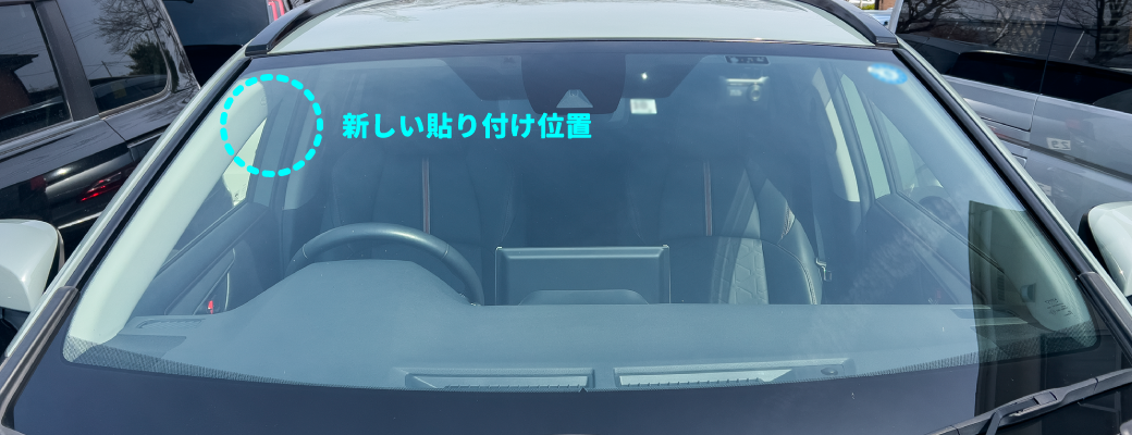 車検ステッカーの貼り付け位置、運転席側へ フロントガラスの右上に移動ツギノジダイ。
