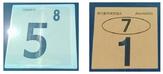 点検ステッカー』と『車検ステッカー』。