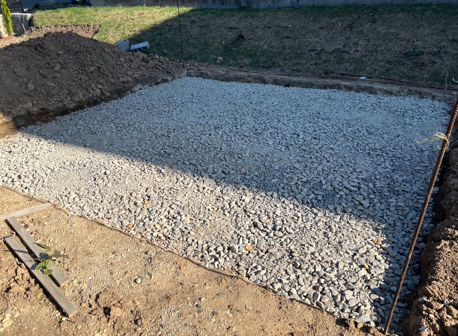 掘方、砕石敷き、転圧一体打ち基礎工事の向陽工業。