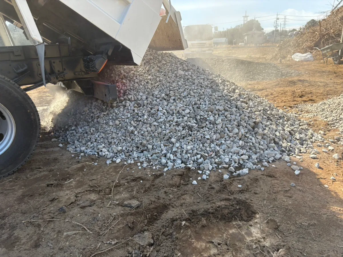 埼玉県さいたま市岩槻区 砂利敷き整地工事で駐車場を快適に!足元の悪さや泥汚れを解消!WEダンプ。