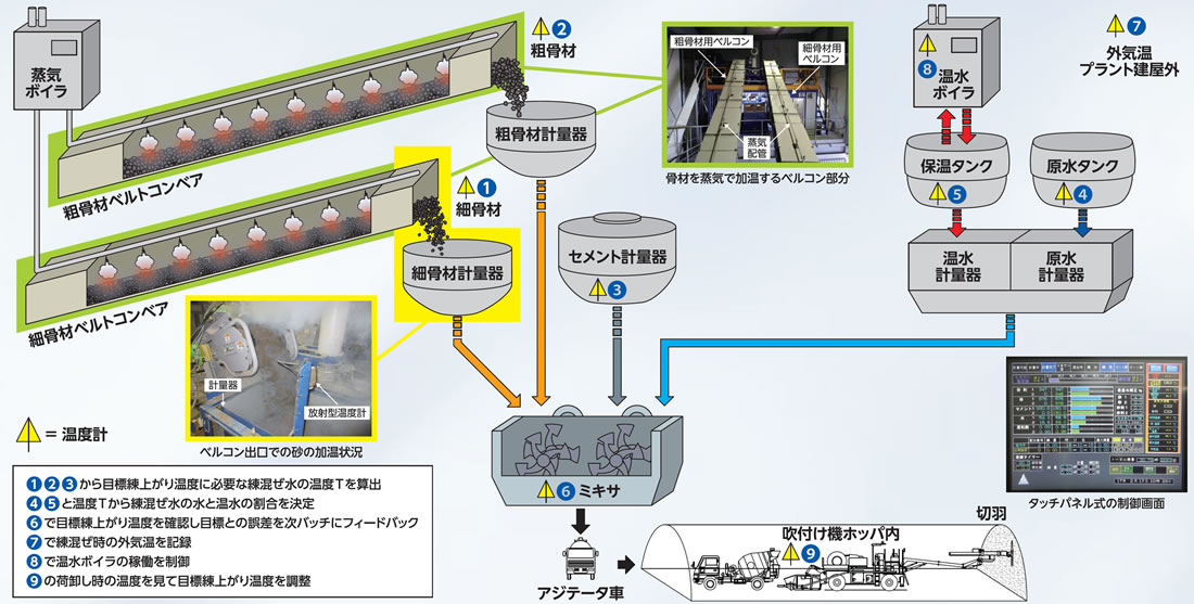 練上がり温度を自動制御する吹付けコンクリート製造設備「スマートバッチャープラント®」地下空間・山岳トンネルの技術土木飛島の技術飛島建設。
