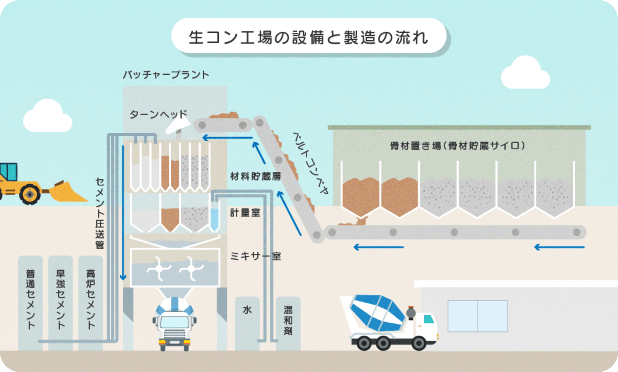 生コン工場のしくみ│生コン工場館:ナマコンパーク。