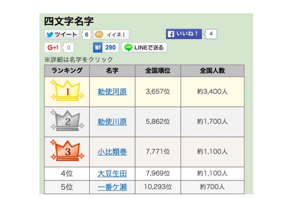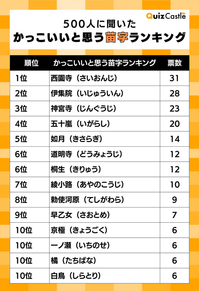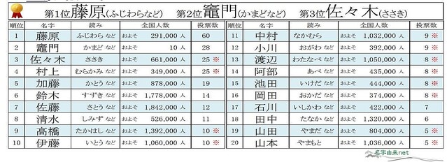 なりたい名字」ランキング発表! 1位は歴史上の人物に多いあの名字 - ライブドアニュース。