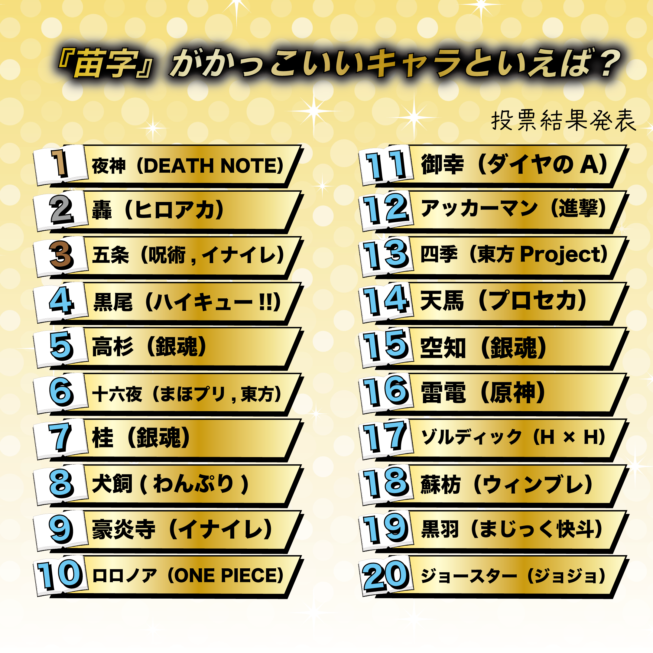 漢字一文字の苗字かっこいいランキング100選 2025最新版RANK1 ランク1 人気ランキングサイト~国内最大級。