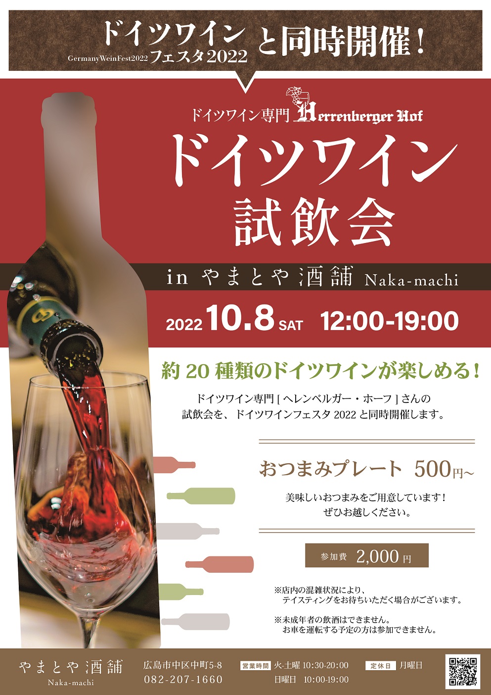 10 8 土同時開催☆ドイツワイン試飲会 in やまとや酒舗 Naka-machi大和屋酒舗。