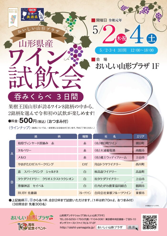 山形県産ワイン試飲会 : 山形県アンテナショップ「おいしい山形プラザ」。