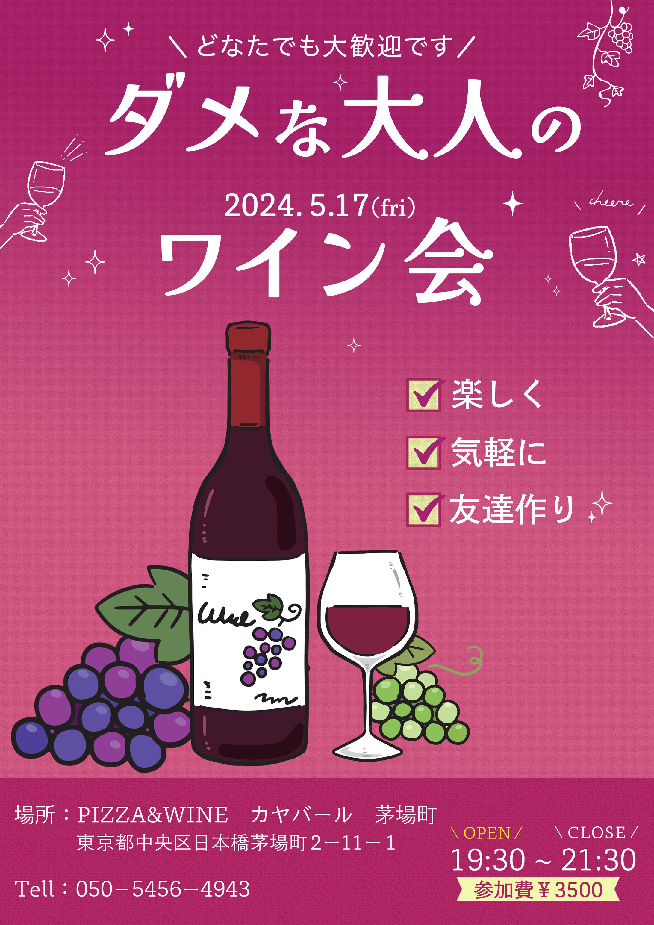 ワインパーティーのチラシ・ポスターに最適な写真・イラストの選び方インスピ。