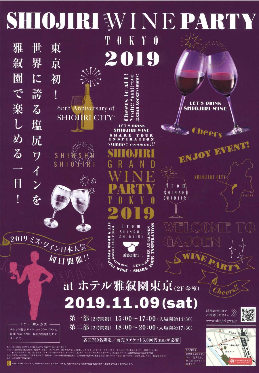 11 9 土 塩尻ワインがやってくる「SHIOJIRI GRAND WINE PARTY 2019 TOKYO」@ ホテル雅叙園東京 - WINEWHATワイン ワット。