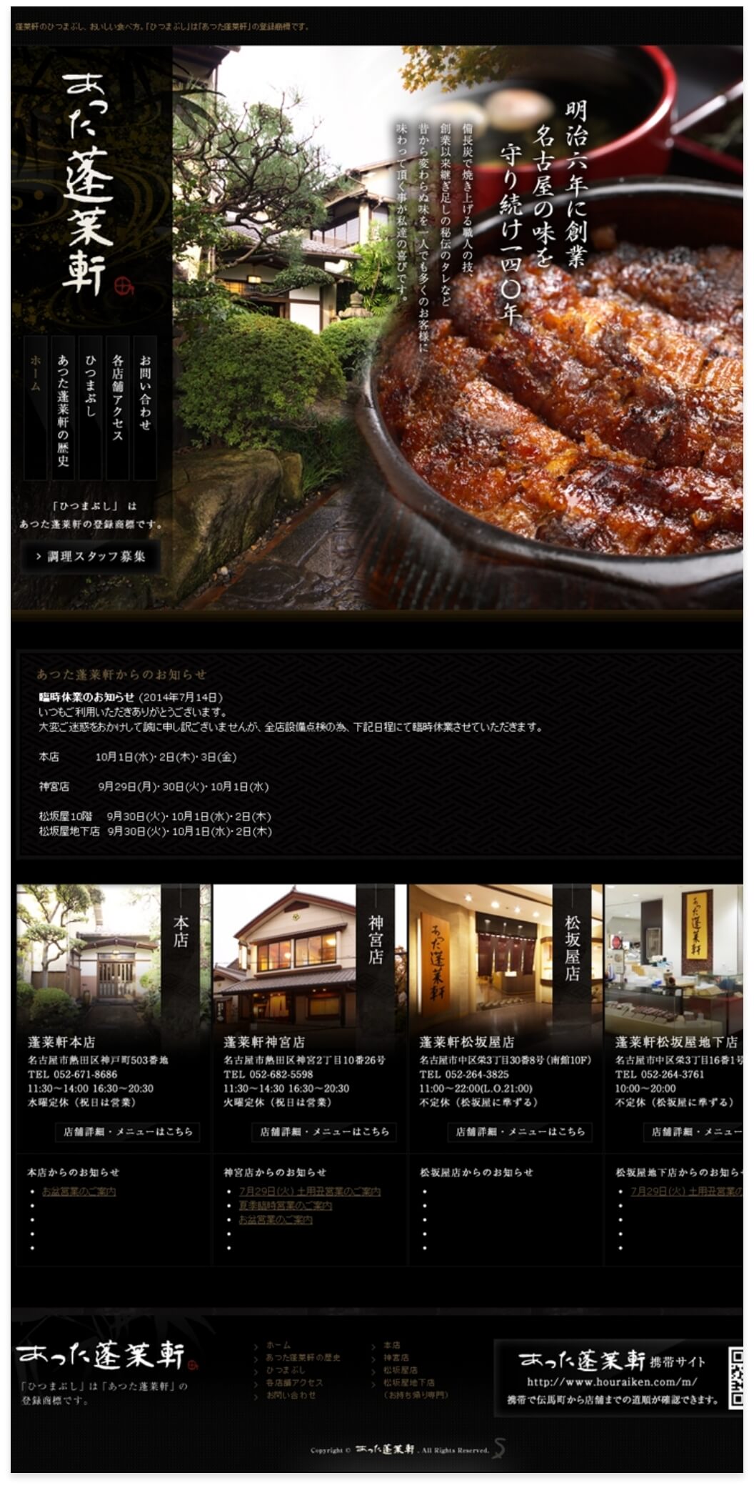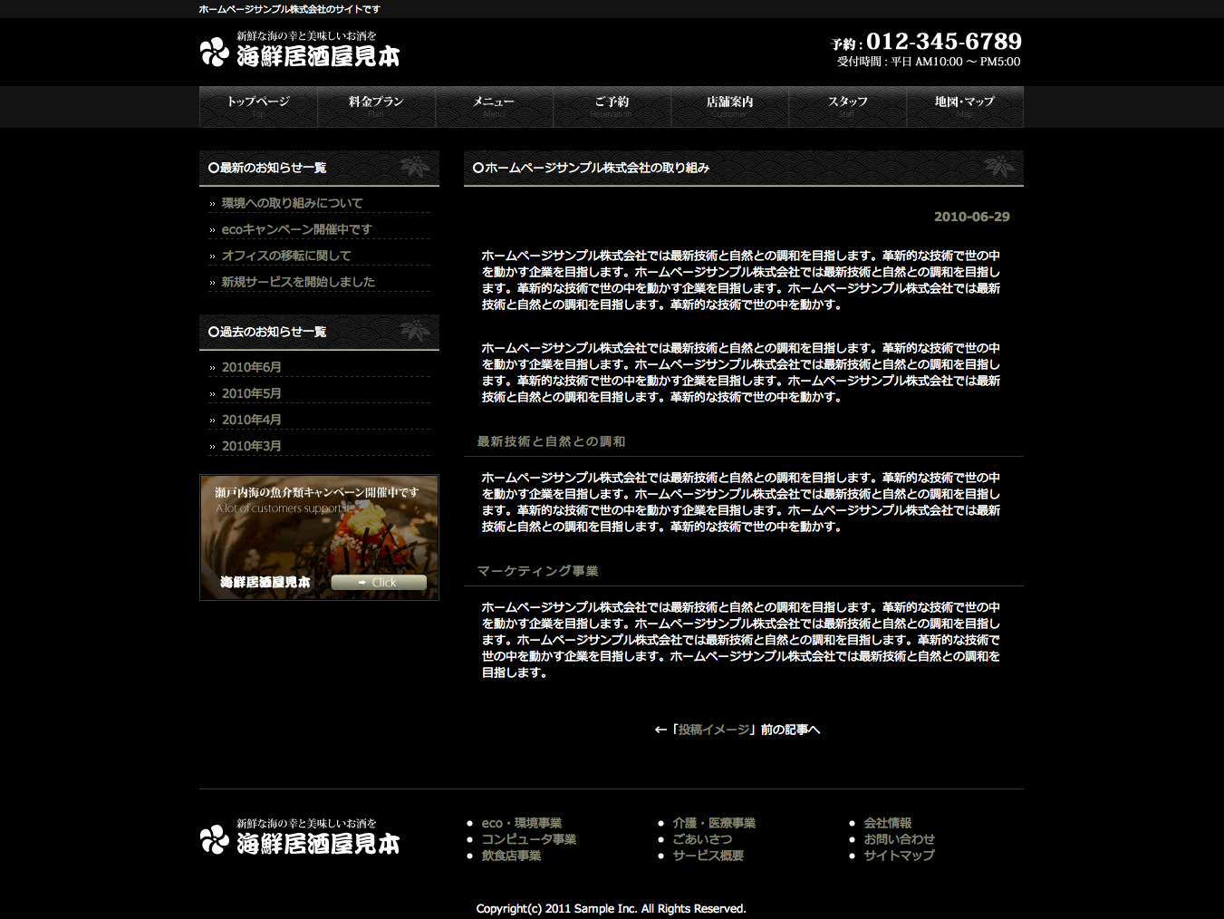 居酒屋ホームページデザインサンプル。