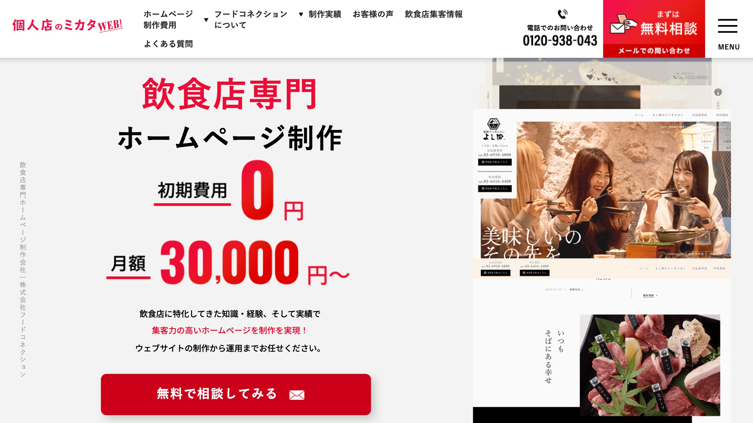 年間コスト・サーバー・ドメイン不要!1万円で飲食店向けホームページを作成しますWebサイトデザイン・ホームページ制作の外注・代行ランサーズ。