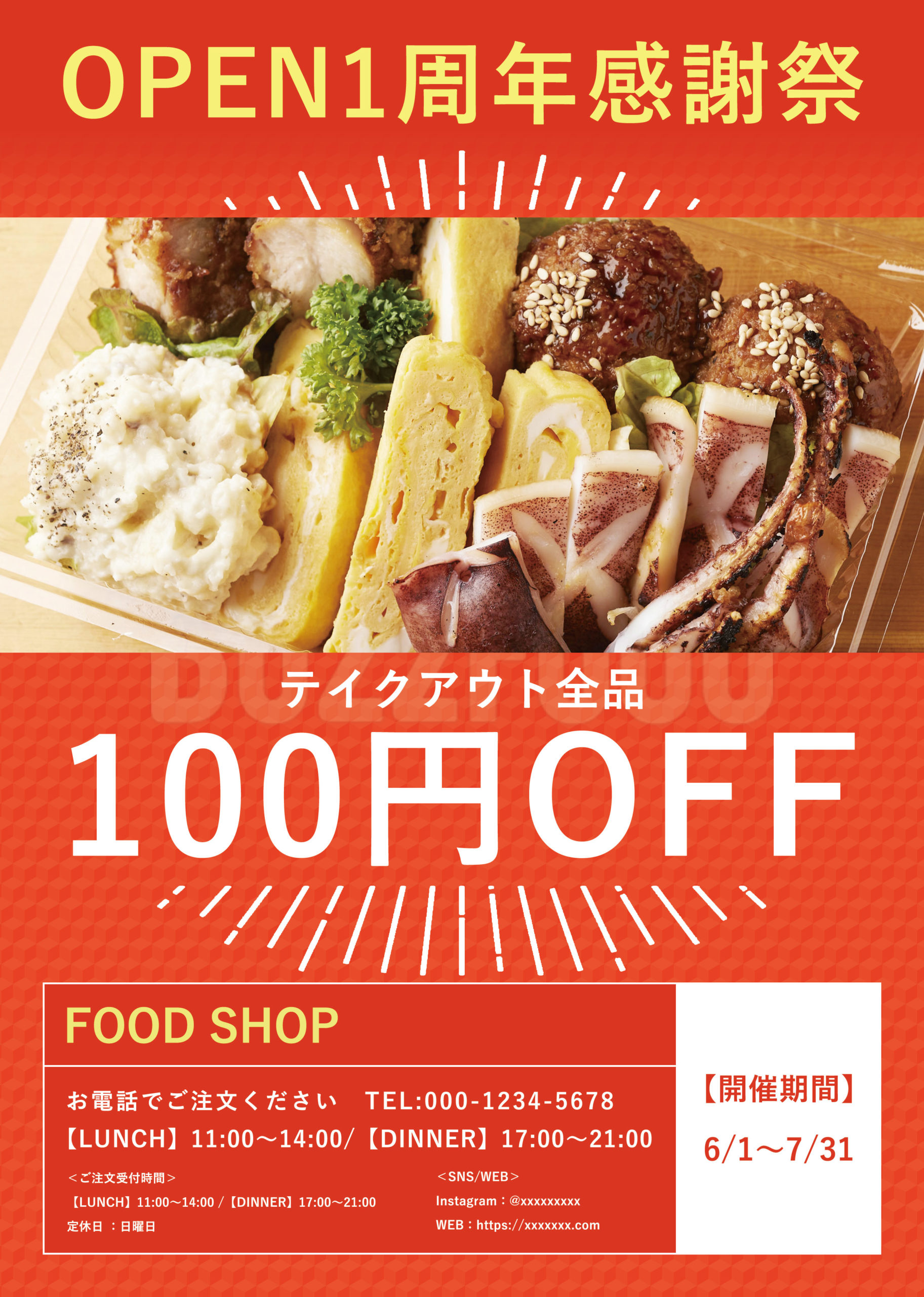 店舗紹介チラシ 居酒屋・和食店にオススメ カラー:茶色・黒 縦レイアウト - BuzzFood。
