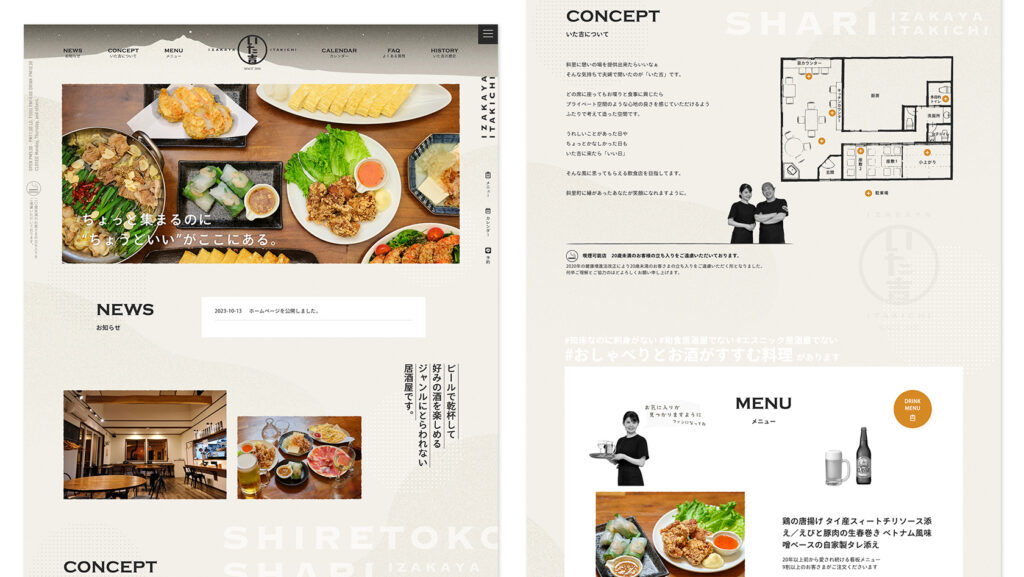 旅人・地元の人に愛される 居酒屋いた吉 ホームページ制作 - 福井のホームページ・動画・チラシ制作フリーランスのトコトコデザイン。