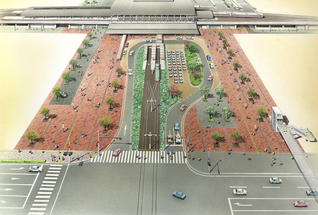 新高岡駅前広場納入事例株式会社MARUWA SHOMEI。
