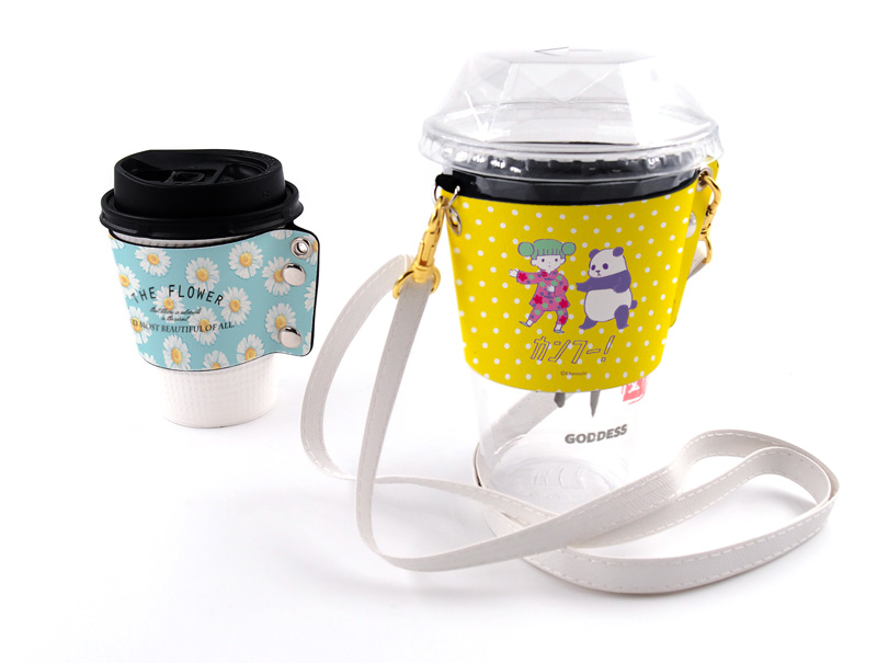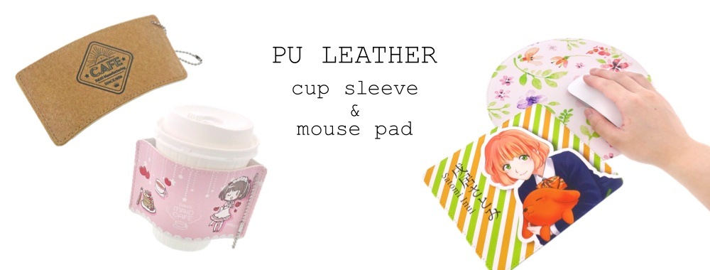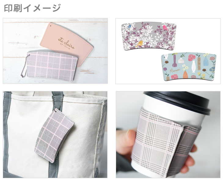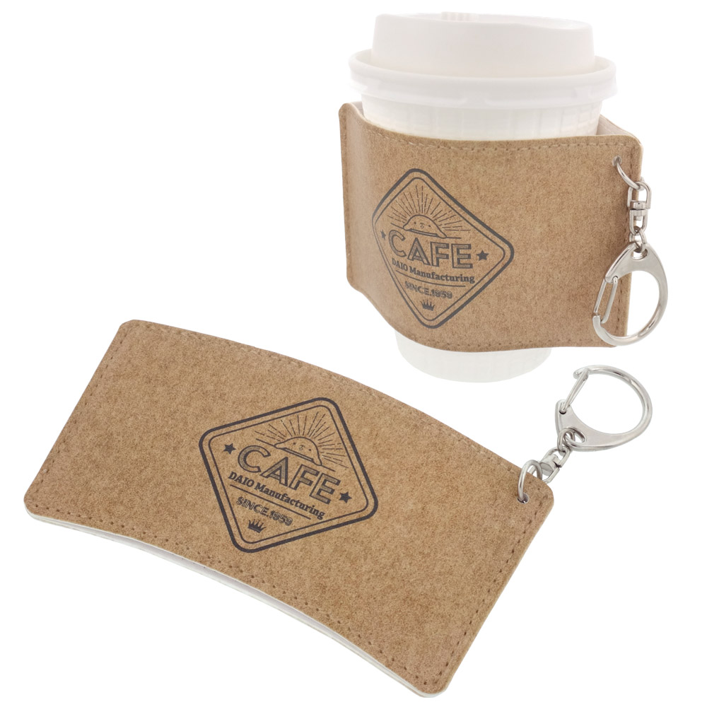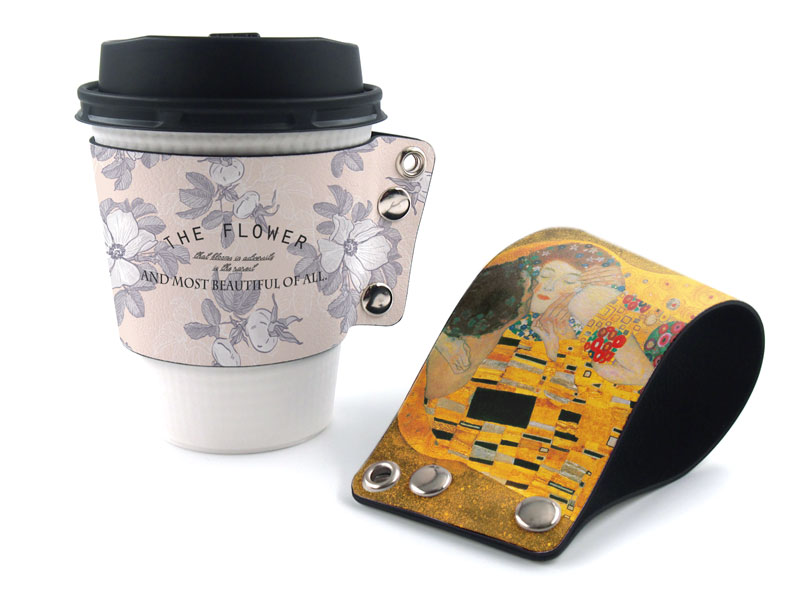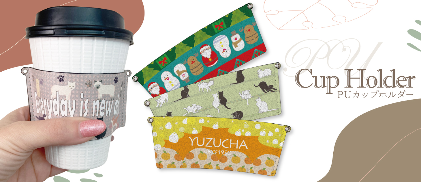 ドリンクホルダー カップスリーブ のオリジナルプリント製作ならヨツバ印刷がオススメ1個からOK!PUレザー製のカップスリーブのオリジナル製作。